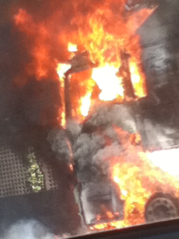 Fire everywhere: again in a traffic jam. This time for a truck inferno.