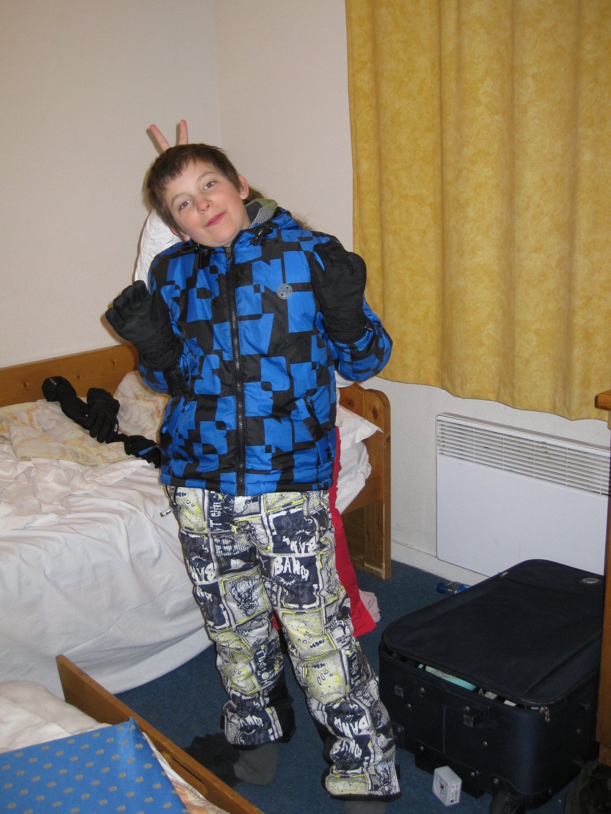 Joost at the appartment after breakfast, happy he can go skiing