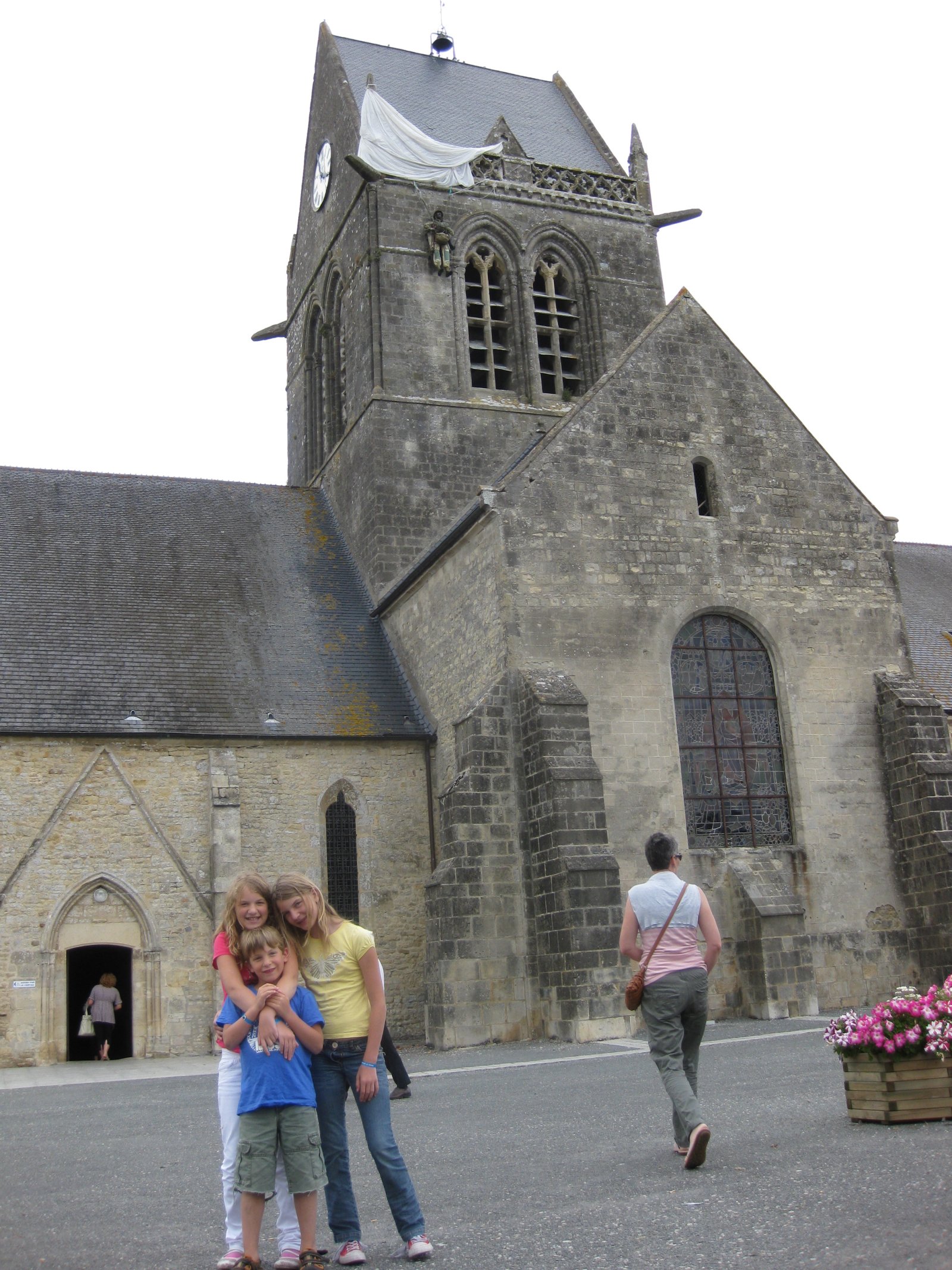 The parachute memorial in St. Mere Eglise